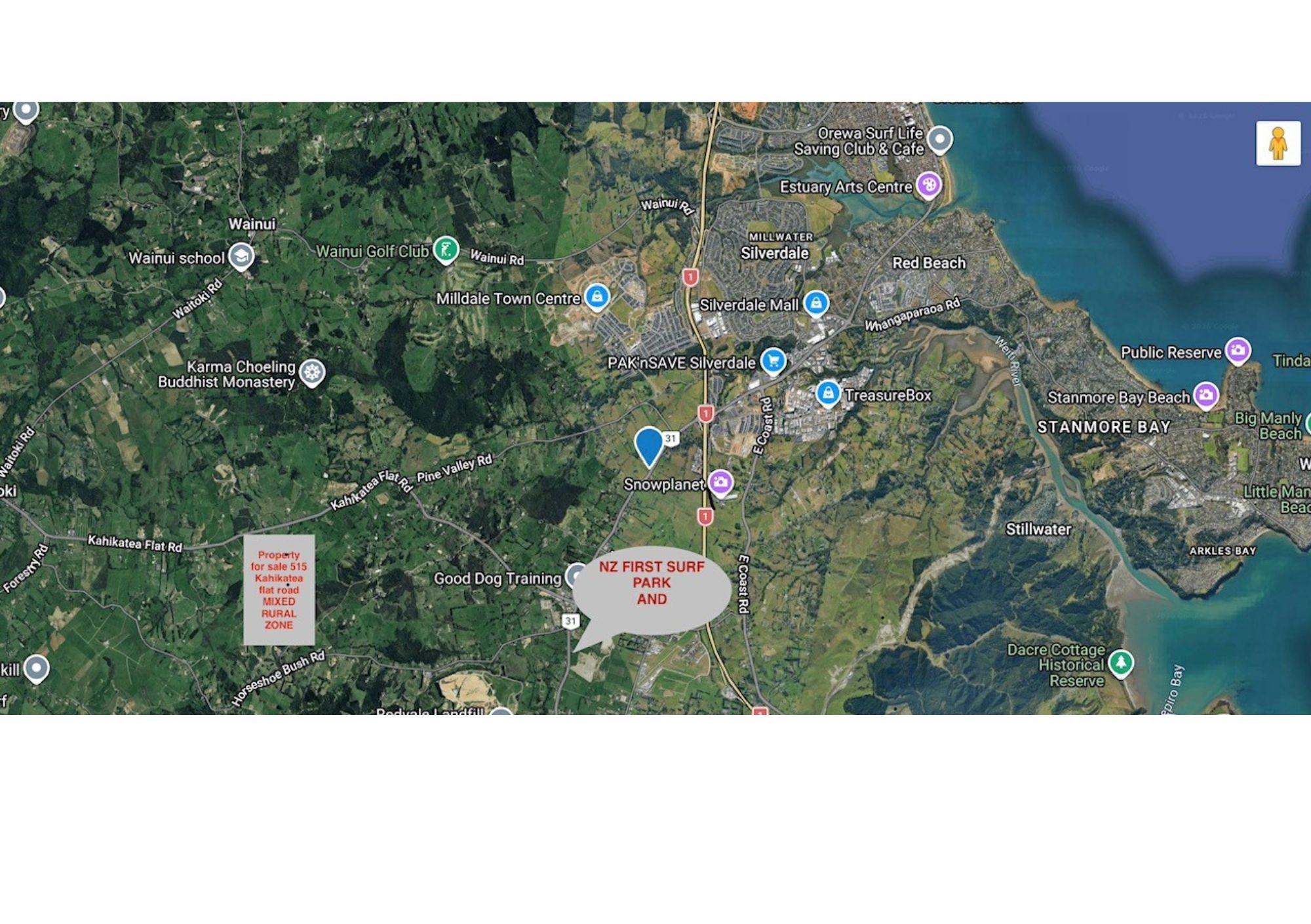 Located just five minutes from the motorway, the property enjoys excellent accessibility. Approximately 35 minutes to the Auckland CBD, 12 minutes to Silverdale and 17 minutes to Albany Mall and Massey University. With substantial arterial road frontage between SH1 and SH16, the site is highly visible and well placed for future growth and enhancement.